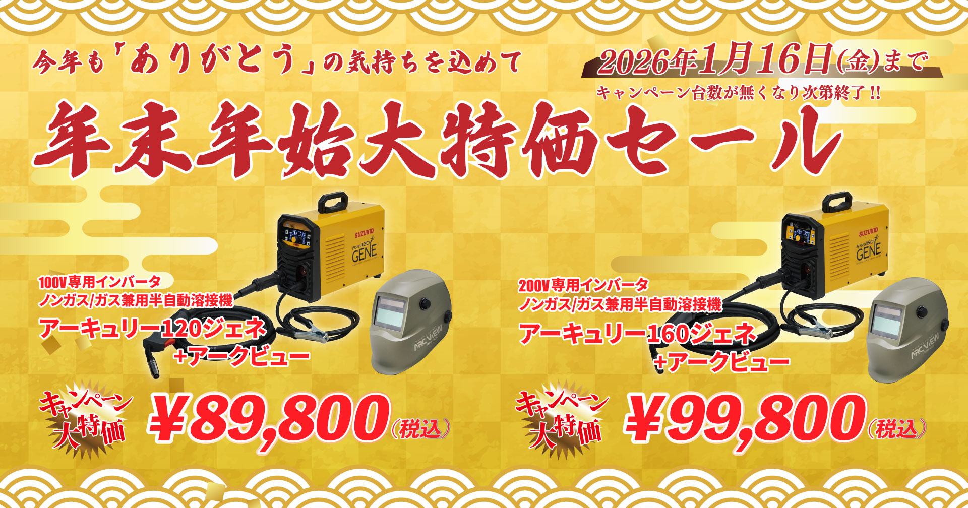 インバータノンガス/ガス兼用半自動溶接機アーキュリー120ジェネ・160ジェネに自動遮光溶接面「アークビュー(AVW-200)」がセットになったお得なキャンペーンを開催!